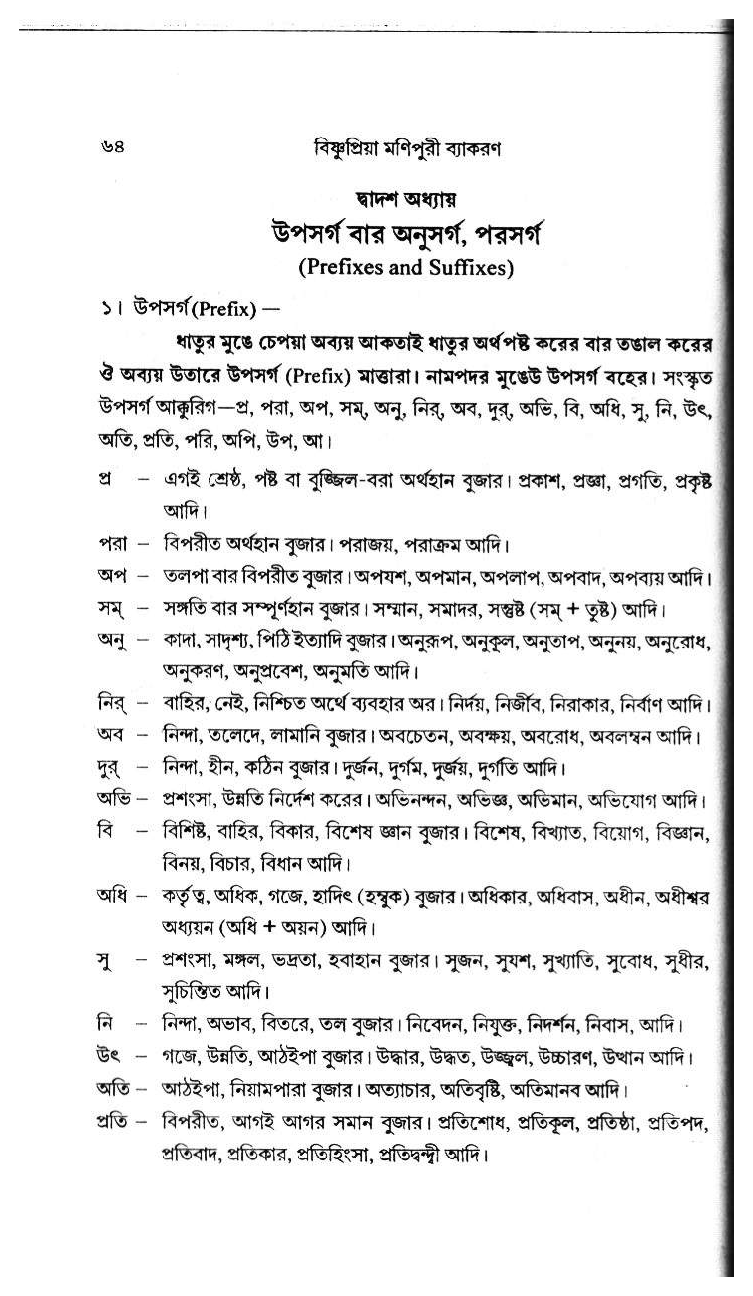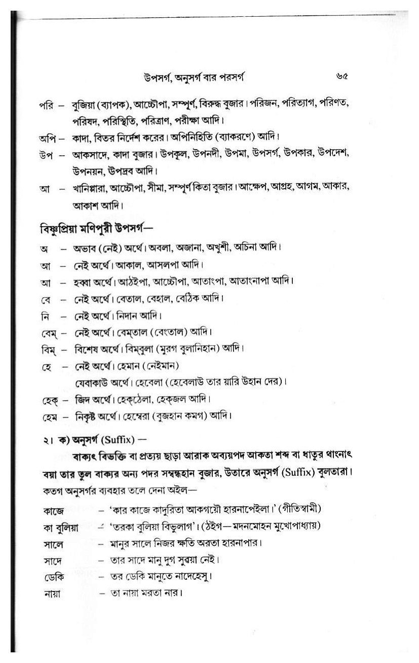 Bishnupriya Manipuri Prefixes (Upasarga) & Suffixes (Anusarga)